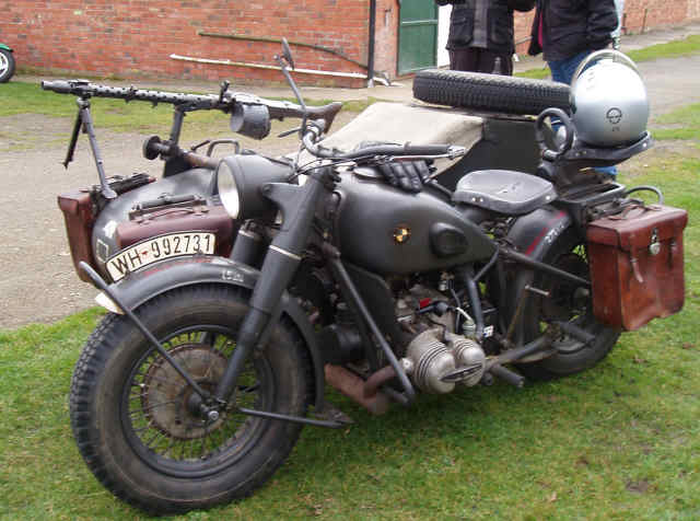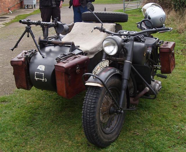 During the Saturday Mick had arranged a special day visitor in the shape of a WW2 German Army BMW R75M Outfit. The m means “mit beiwagen” (with sidecar) and it was complete with the MG42 ( Maschinengewehr 42, or “machine gun 42”) a 7.92mm universal machine gun which entered service with the Wehrmacht in 1942.