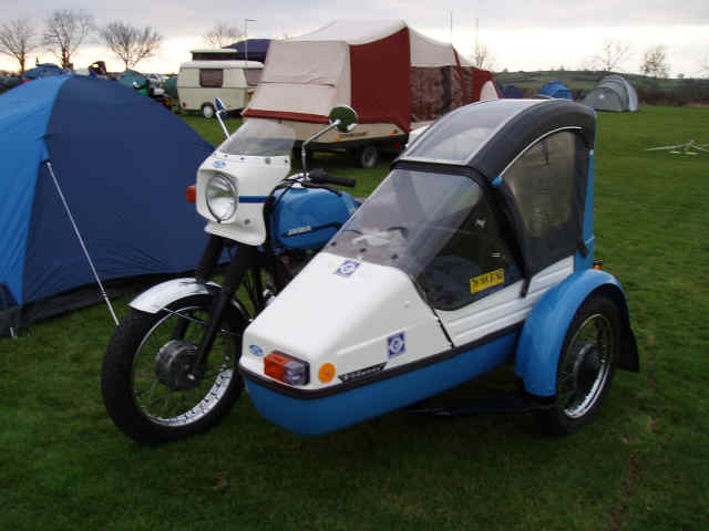 The event was well attended with a good variety of Outfits, couple of Trikes, some Solos and a couple of old bikes (more about the women later). Again this year the home made cakes were very popular, flying of the plates as fast as they were put out. Mulled wine proved to be a winner and also could be used as a hand warmer for Ann.