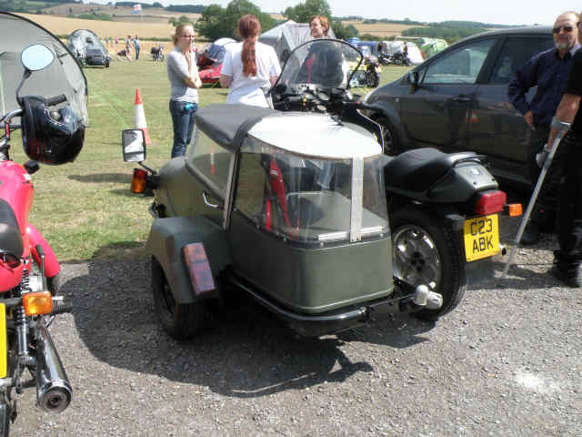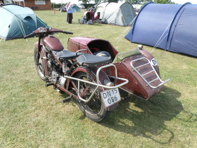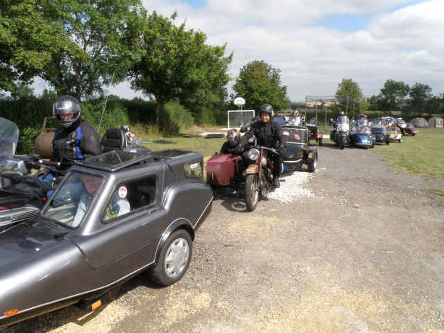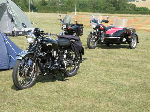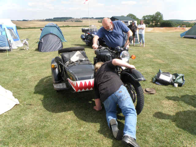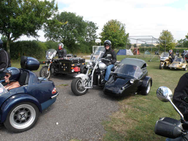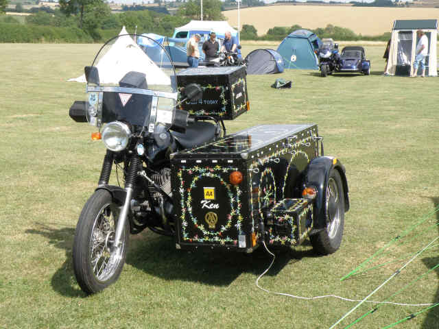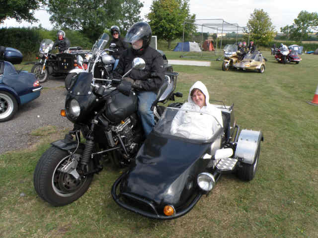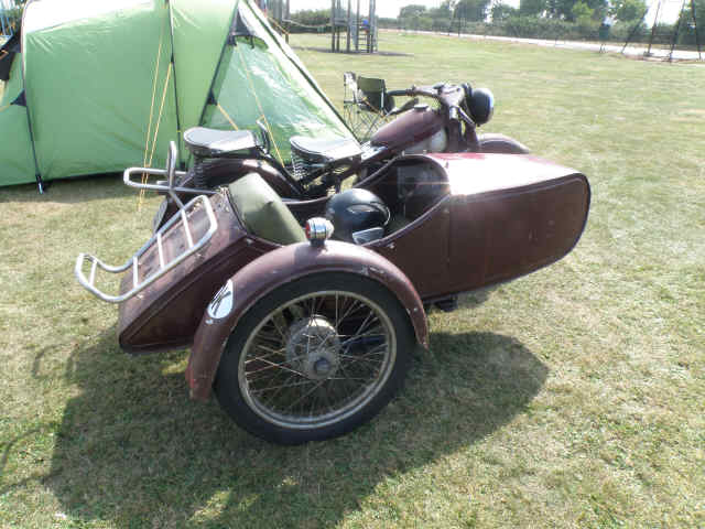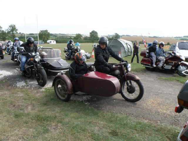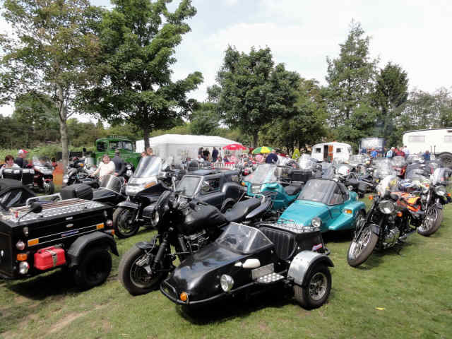 This meeting is held at Hallaton, in Leicestershire, and it is organised by the Tri-Anglia Wheels Sidecar Club. We left on Friday afternoon, with the weather looking a bit iffy – so the wet-weather kit went on; however it was not needed and we had a nice run to the site. The meeting is held at a local recreational centre; rugby posts are up, with a cricket pitch, tennis court and swings and slides for the children. Some money is currently being spent there at the moment – the tennis courts are being resurfaced, a practice net for cricket is being constructed and a netball area should soon be finished. This all helps to provide good facilities for the local people and visitors to the club house.