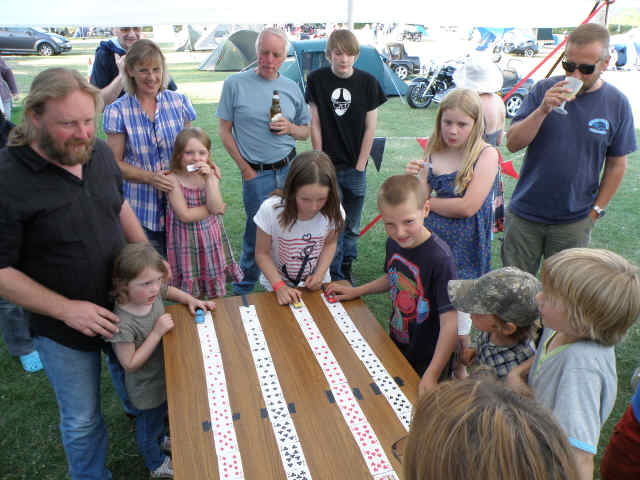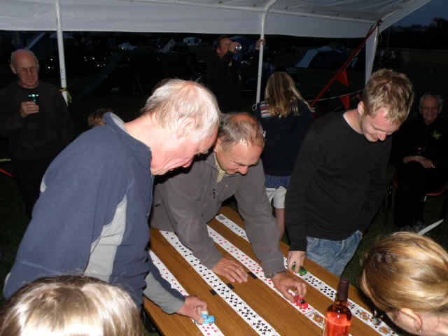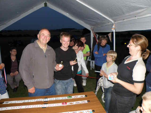 Later that evening the Hallaton Grand Prix for adults got under way; this was as exciting as ever, with lots of shouting and good-natured banter. The children helped us out by shining their torches on the table.