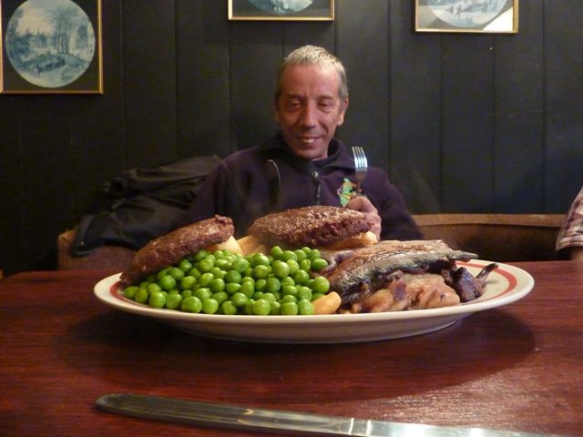Sunday evening was again a visit the Red Lion, this time for a Sunday roast/pudding & even Martyn seems to have his own “bar stool” near the bar for extra nibbles.
