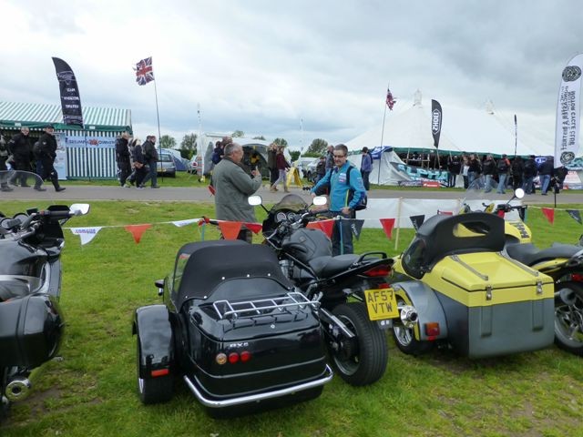 The show is billed as Europe’s biggest outdoor bike show; however some people felt the show was a little smaller than last year. The entrance fee was £18, although there were some discounts to be had. The entrance fee and the weather may have put a few people off on Saturday. The interesting thing was that the sidecars attracted a lot of attention, and we had more interest on Saturday alone than over the whole weekend last year. Hopefully this will lead to some more sidecars being on the road.