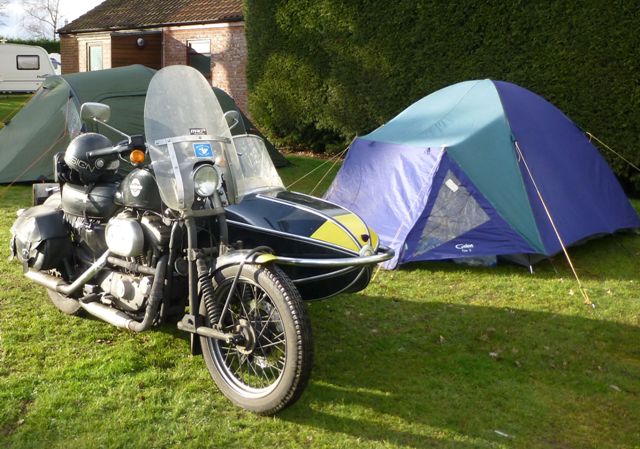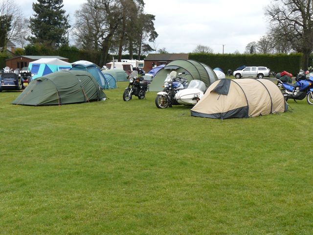 Well, it was time for the new rally season to begin with the Tri Anglia Wheels rally at North Runcton and it was to be a wet one. Martyn had arrived on Thursday to start setting up and managed to secure the shed on the rally field for a fee that can only be described as cheap as chips. The ride there on Friday was a dry one and after a quick cup of tea and a few hellos it was time to get the tent up and it was just in time as the rain decided to start.