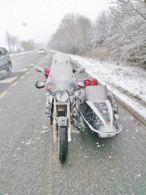 It was snowing when Wolfgang set off from his home in Germany.