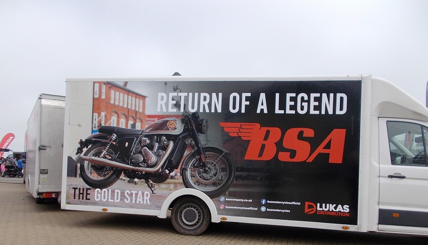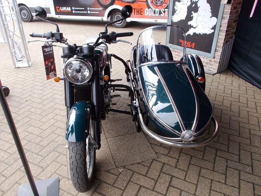 Close by was the area that was set aside for ride outs, lots of motorcycle makers had bikes that you can ride on the road in groups these were very popular all day. BSA had a stand for their new Goldstar model, one attraction was an outfit on display quite a lot of people looked at this.