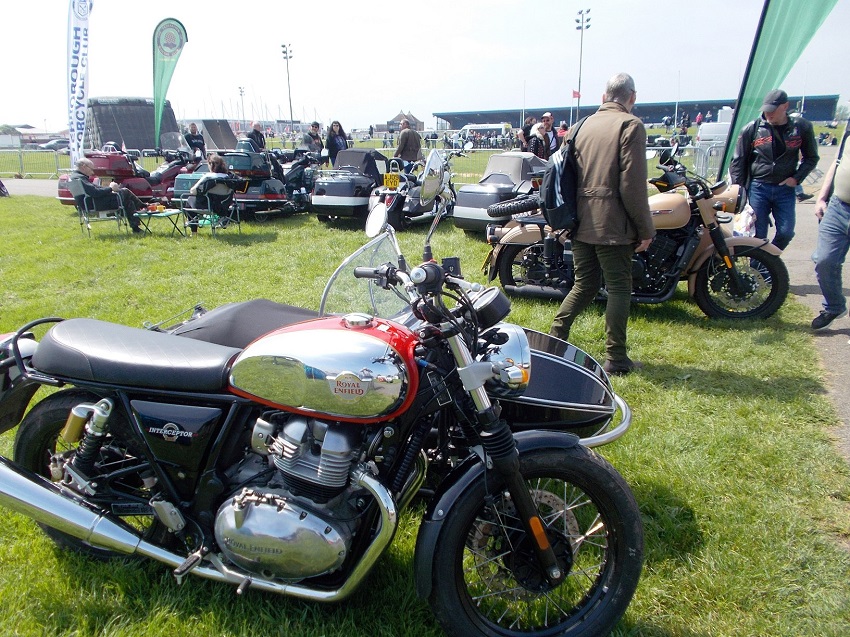 Chris and I first rode our solos here in the late 80’s, the show was much bigger then with 70,000 people coming in over the weekend. Watsonian / Squire had stands at this time, and I got to sit in one of their outfits and thought I must get another outfit again.