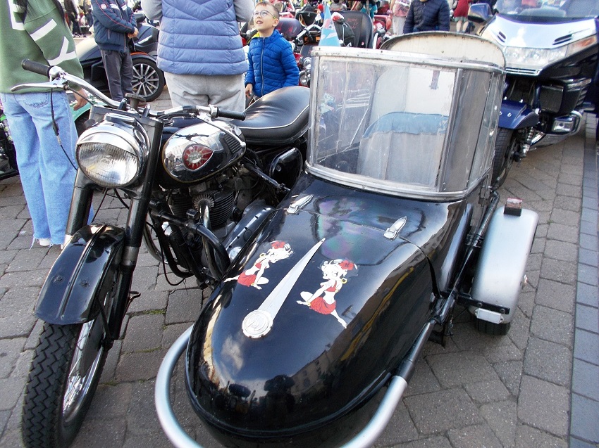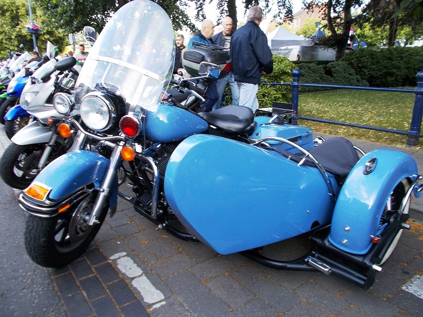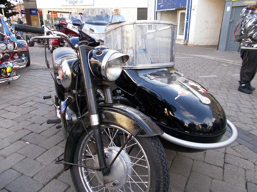 How the bike came to Britain is not known, the first owner here rode it until it got to heavy for him and then he fitted a chair to keep it upright, eventually selling it to the chap I was talking to. He was about to go home and he had to squeeze the outfit through the crowds, I mentioned this to him, his reply was no problem, I have sirens and red lights, I will get through.