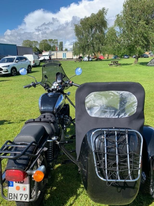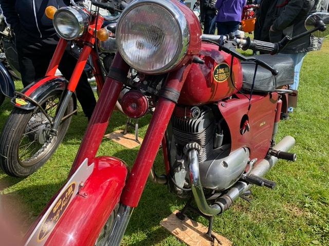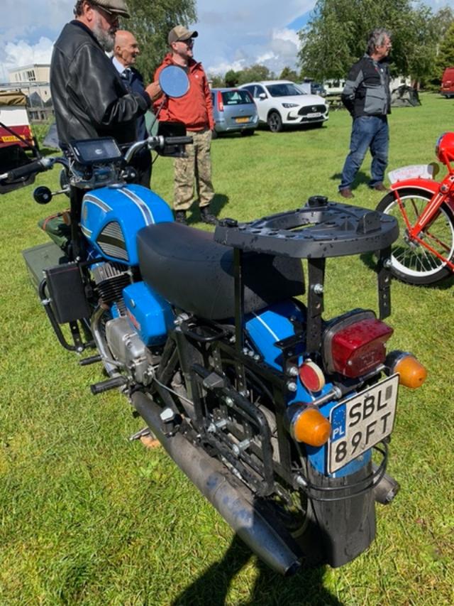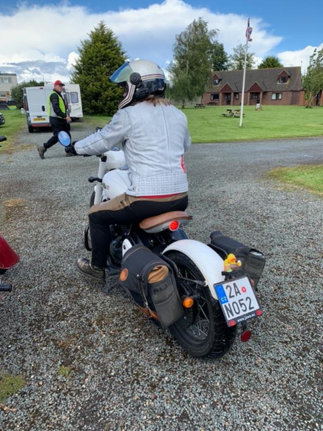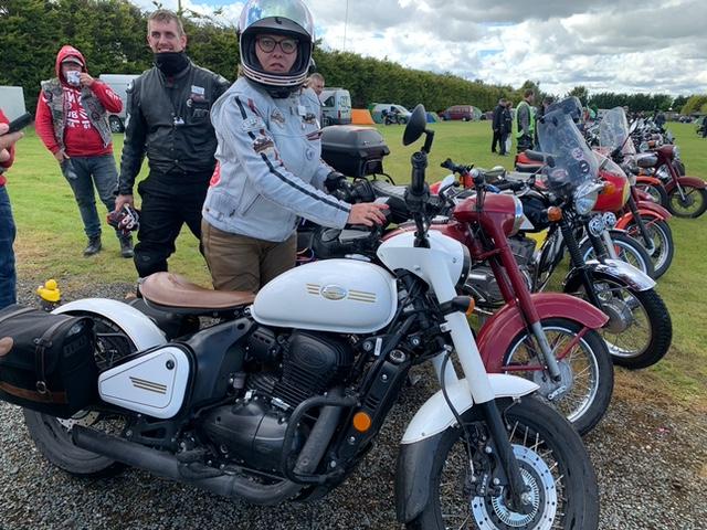 Czech lady rider. Jawa 300CL motorbike in the UK