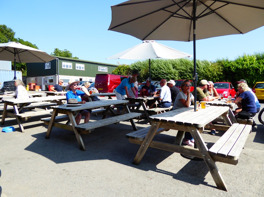 Saturday, after surviving Friday night, most had planned their day, walks around the reservoir, ride out up or down the Gorge and local roads, a spot of green lane riding, visit Wells. But most were back by the afternoon so they could pay another visit to Cheddar Ales Tap Room, the fact it is only a 5-minute walk helps. There was entertainment at the Tap Room plus entertainment on the campsite, along with food and a pop-up cocktail bar.