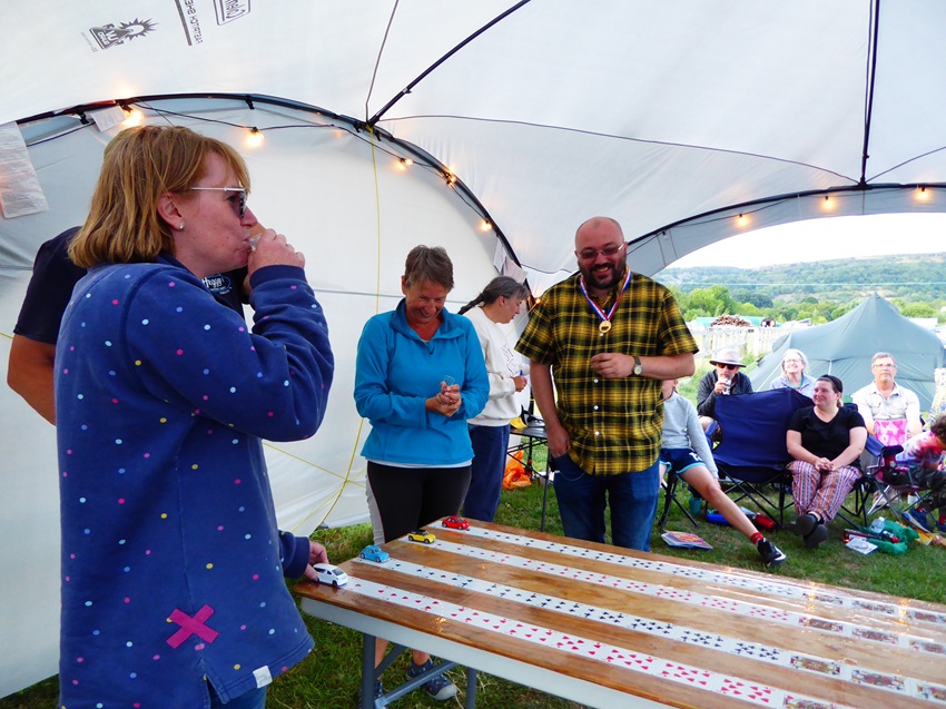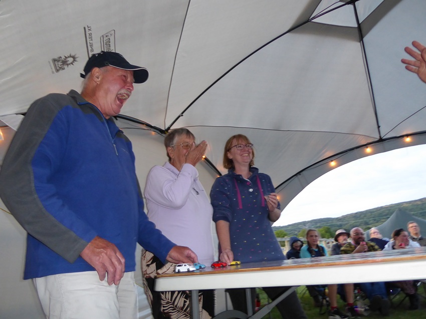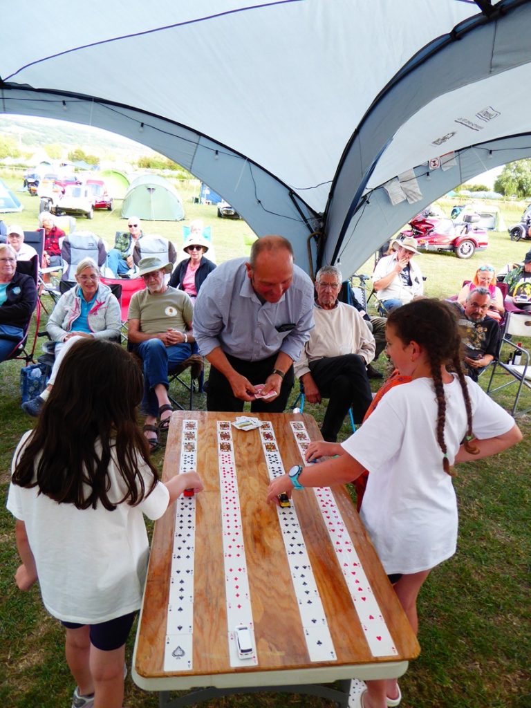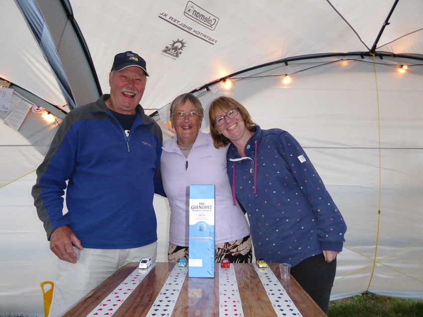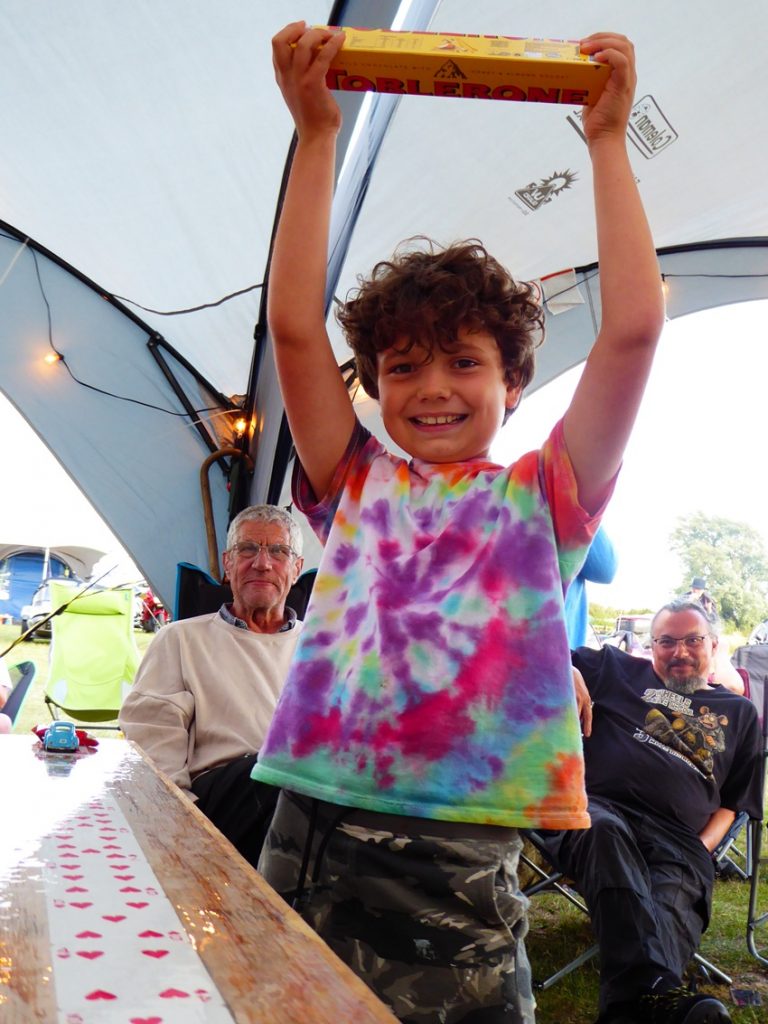 Sunday arrived quite quickly and it was time for most to pack up in the dry, which is a bonus for any event, and head home, with 3 attendees staying on. So, who won what? The quiz was won by Nibbs, Gribbs and Avi, second place in the Tresure Hunt was “Cheesy Triple” Mark, Karen and Paul, first place was Carolyn and Dave. Best outfit was Robert’s Harley and Anson Osprey with the Mucky Hands awards going to Ryan and Mike for their on the field spannering. The Kids Grand Prix was won by Oscar and the Adult Grand Prix was won by Phil (of various hats).