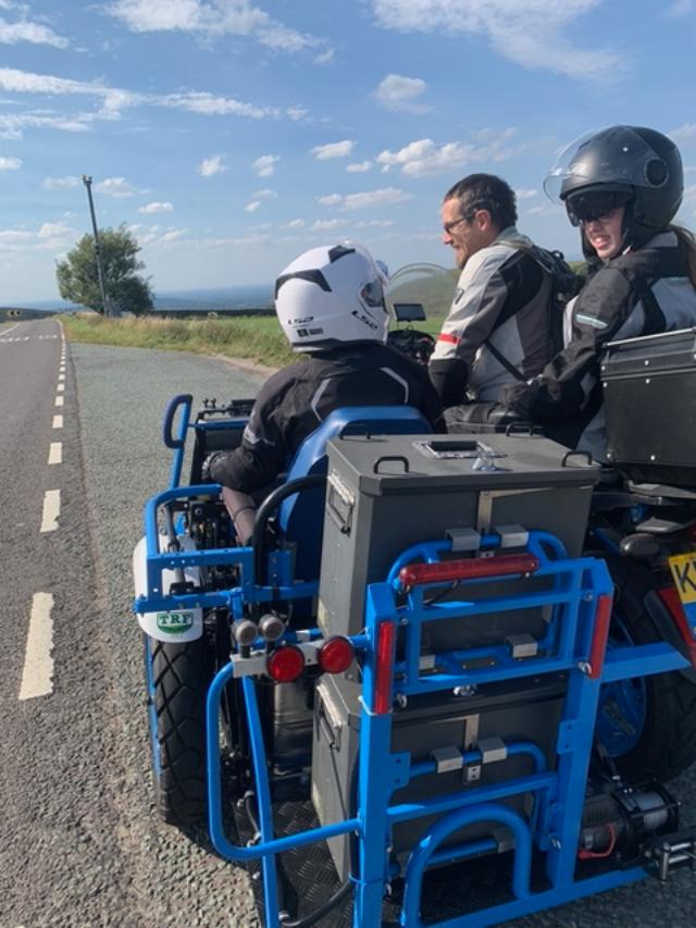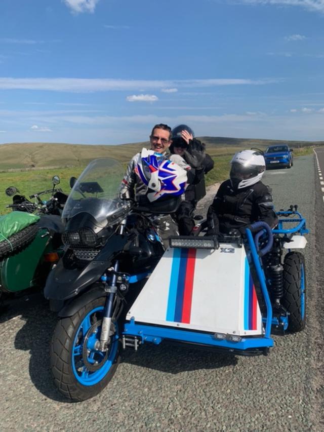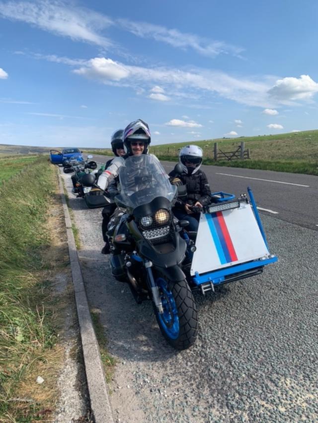 While having a brew in a lay-by this outfit stops for chat and the homemade sidecar was made by the owner in Wigan. (Wife on the back & daughter in the chair).
