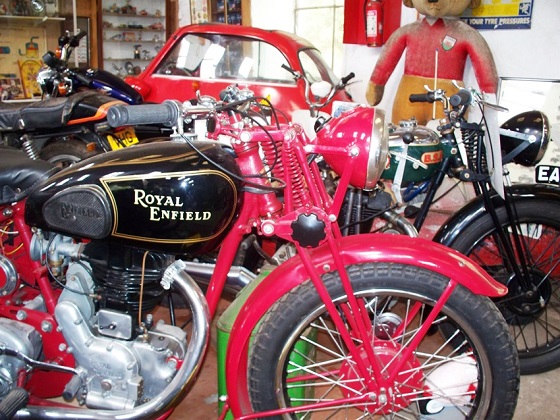 The museum is in a lovely rustic setting. I paid the entrance fee and wandered through an area of memorabilia into the main museum, where there is a large hall that houses a collection of motorcycles, cars, toys and models. There are approximately 40 motorcycles on display and about half that number of cars. I must be getting older because some of the vehicles on display I have either owned or ridden at sometime!