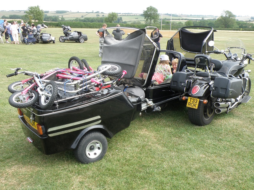 To sum up towing a trailer behind your Outfit: – maximum width 1m, maximum length is the distance from the rear wheel spindle to the back of the trailer and must not exceed 2.5m. Maximum towed weight must not exceed 150 Kgs or two thirds of the motorcycles kerbside weight, whichever is the least. There are a few other requirements, the motorcycle must be marked with its kerbside weight and the trailer must be marked with its unladen weight. Lighting regulations are the same as for other small trailers.